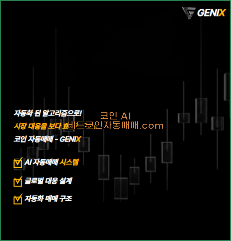 AI 알고리즘 매매 style="margin:0 0 10px; line-height:1.7;"> AI 자동매매 GENIX GENIX는 기존 알봇 ALBOT을 전면 리뉴얼하여 탄생한 AI 기반 코인 비트자동매매무료체험추천 플랫폼입니다. AI 자동매매 GENIX는 안정적인 수익을 내는 것을 목표로 하고 있으며, 현재 글로벌 코인 비트자동매매무료체험추천 솔루션으로 운영중입니다.